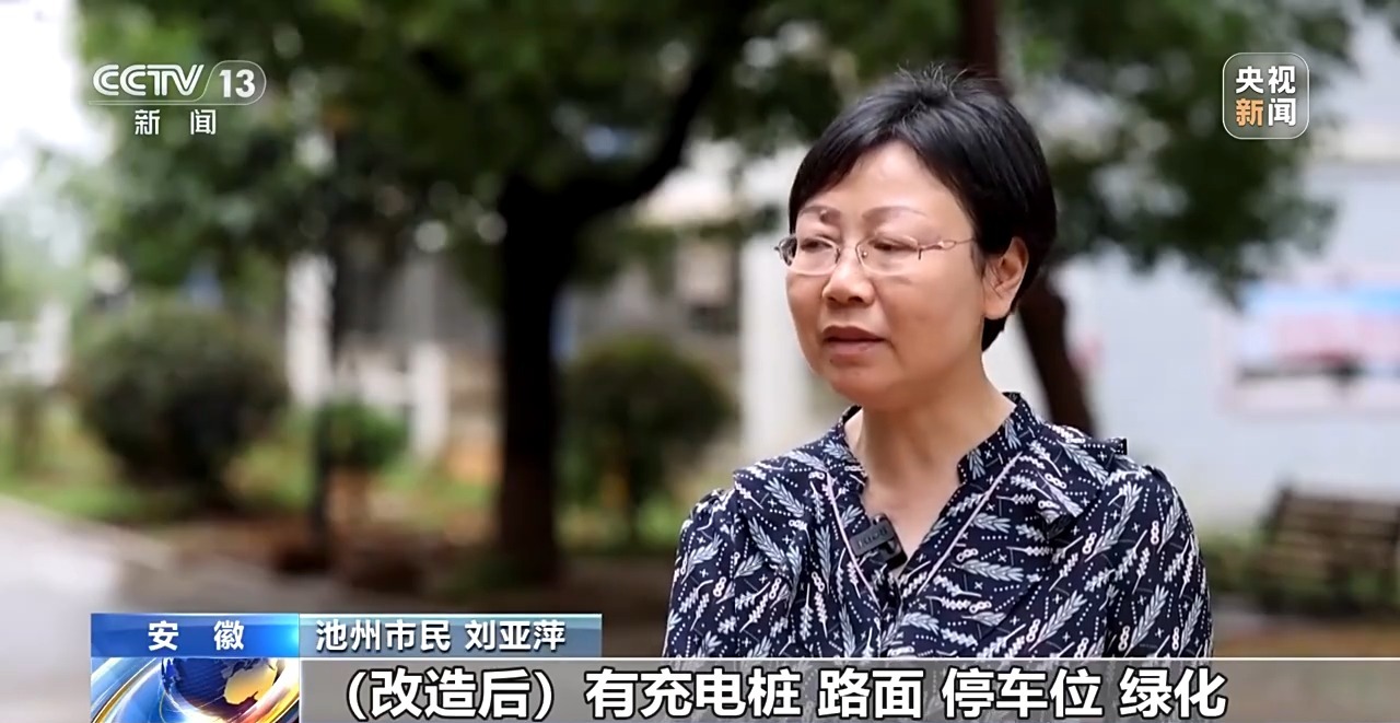 池州市民 劉亞萍:(改造後)有充電樁,路面停車位,綠化,充分吸納了我們的居民意見,感到很開心也很滿意。