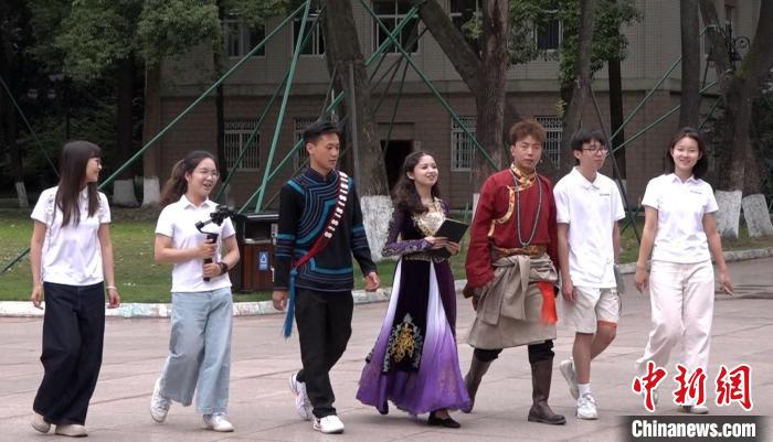 5月15日,多民族“主播團”的部分成員在西南民族大學校園。 陳選斌 攝