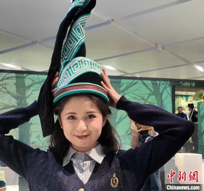 5月15日,迪拉熱·阿地力江與同學在西南民族大學民族博物館拍攝民族服飾。 中新網記者 賀劭清 攝
