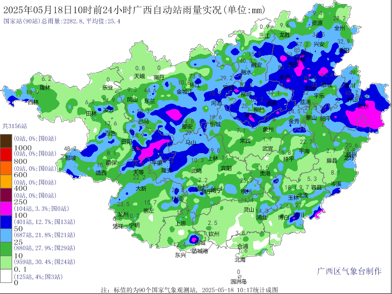 最大24小時雨量為玉林北流市大倫鎮248.2毫米