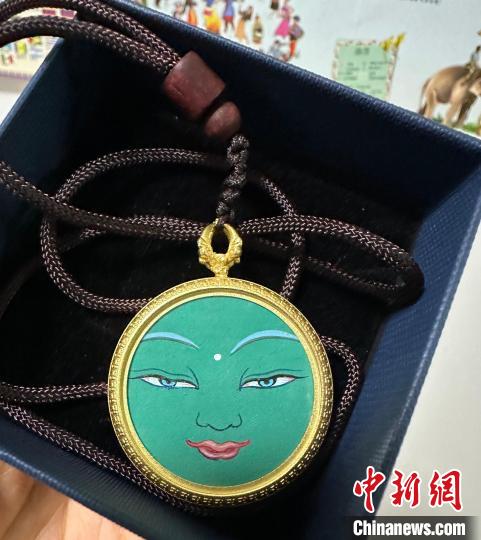 圖為藏族畫師扎西當知布繪製的佛眼小唐卡飾品,受到遊客的喜愛。中新社記者 丁思 攝