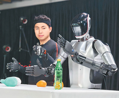 在上海張江機器人谷的實驗室裏,傅利葉智能科技有限公司的工程師正為一台通用人形機器人GR-2調整靈巧手的抓握力度。這台身高1.75米的機器人將被送到康復中心,承擔康復訓練任務。