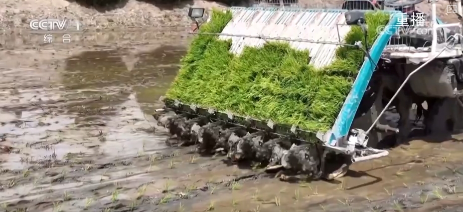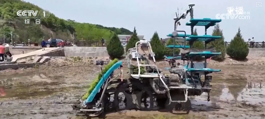 與此同時,位於黃土高原上的南泥灣迎來水稻插秧季。搭載北斗導航系統的無人駕駛插秧機首次駛入南泥灣。