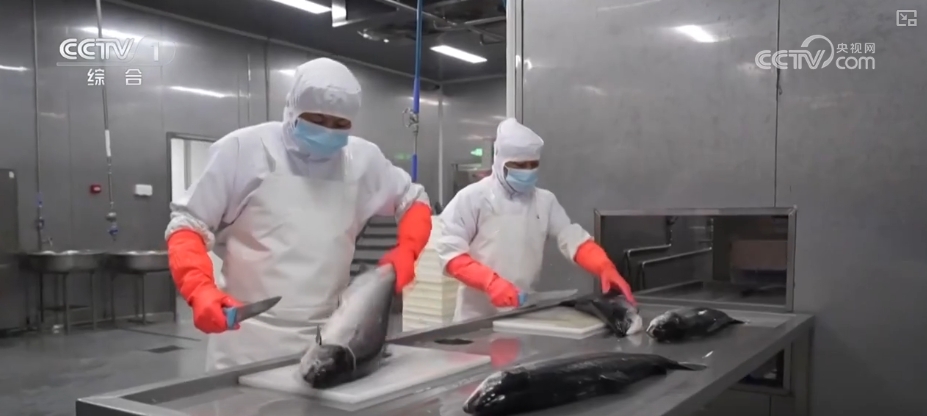 在四川成都的東航冷鏈西部生鮮港,搭乘空中專線從秘魯運過來的冰鮮三文魚,在這裏加工後,快速配送到周邊的商超門店。從國外產地到國內餐桌,最快只要48小時。