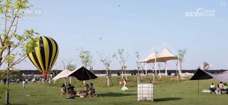 在江西南昌的贛江市民公園,每逢週末這裏便熱鬧非凡。露營區裏,不少市民在這裏搭起了天幕、帳篷,擺開野餐墊,繽紛錯落的帳篷點綴綠地。大家在長達28公里的濱江景觀連廊中,超9.5萬平方米的綠地上,親近自然、放鬆身心,享受愜意的休閒時光。