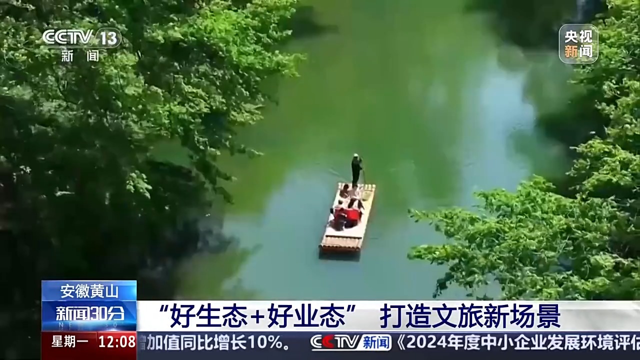 安徽黃山的千年古村西溪南村近期進入一年中最美的青綠時刻。在這裏,遊客們除了可以漫步古村落,還可以乘坐小小竹排穿梭楓楊林,或坐上全景天窗觀光軌道小火車沉浸式體驗人在畫中游的生態美景。