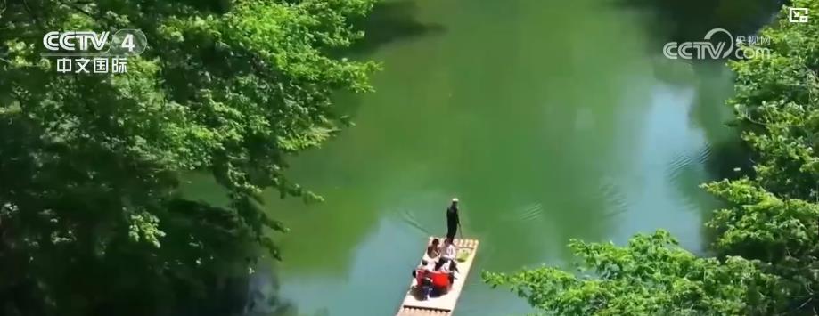 安徽黃山的千年古村西溪南村近期進入一年中最美的青綠時刻。在這裏,遊客們除了可以漫步古村落,還可以乘坐小小竹排穿梭楓楊林,或坐上全景天窗觀光軌道小火車沉浸式體驗人在畫中游的生態美景。