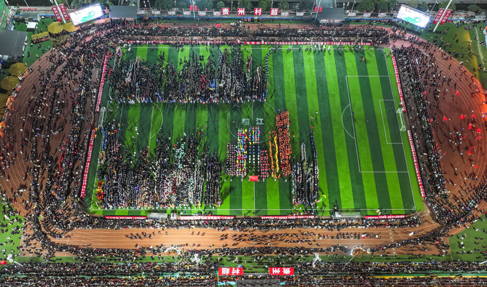 2025年貴州“村超”開幕式現場(2025年1月4日攝,無人機照片)。新華社記者 楊文斌 攝