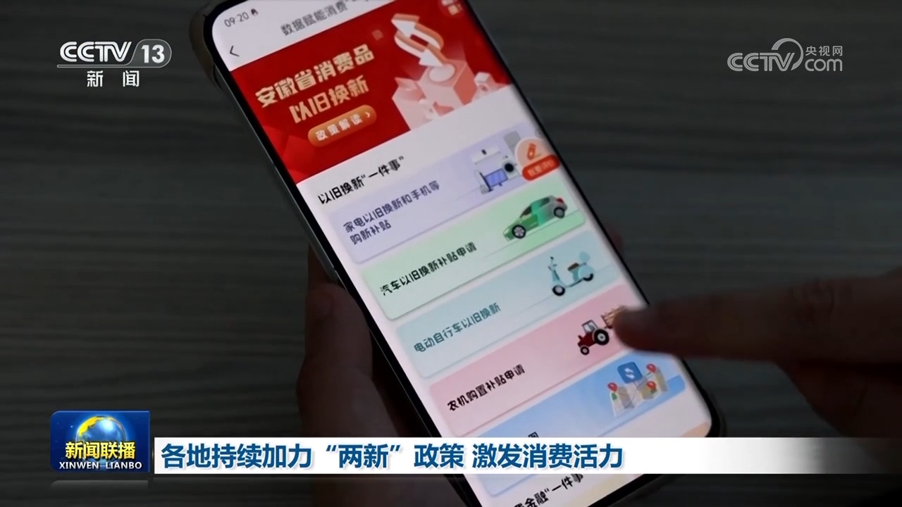 央視網消息 (新聞聯播):各地持續加力“兩新”政策,進一步優化流程、升級服務,激發市場活力,讓廣大消費者享受到更多實惠。