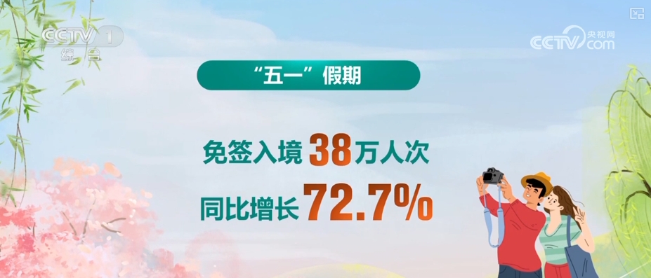 剛剛過去的“五一”假期,入出境外國人達到111.5萬人次,同比增長43.1%。其中,免簽入境38萬人次,同比增長72.7%。