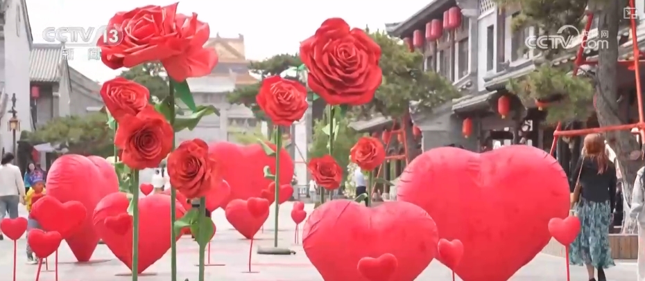 在山東莒縣的莒國古城,玫瑰元素融入古城建築肌理,一街一主題、一巷一場景,為遊客打造了一場浪漫之旅。