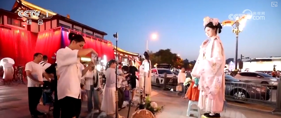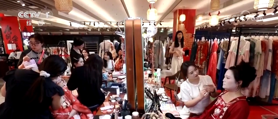 在陝西西安,伴隨“國潮”熱發展起來一種新職業——漢服妝造師,他們專門從事漢服相關的妝容和造型設計。截至2025年2月,西安已有3000多家漢服店,漢服出租及妝造業務的市場份額佔全國市場的比重超30%。進入旅遊旺季,一家擁有60位妝造師的美妝館依然會忙得不可開交。