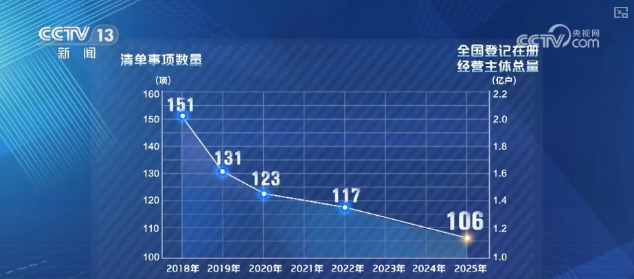最近,《市場準入負面清單(2025年版)》公佈。從2018年我國首版市場準入負面清單出台到現在,清單事項數量由2018年的151項壓減到目前的106項。