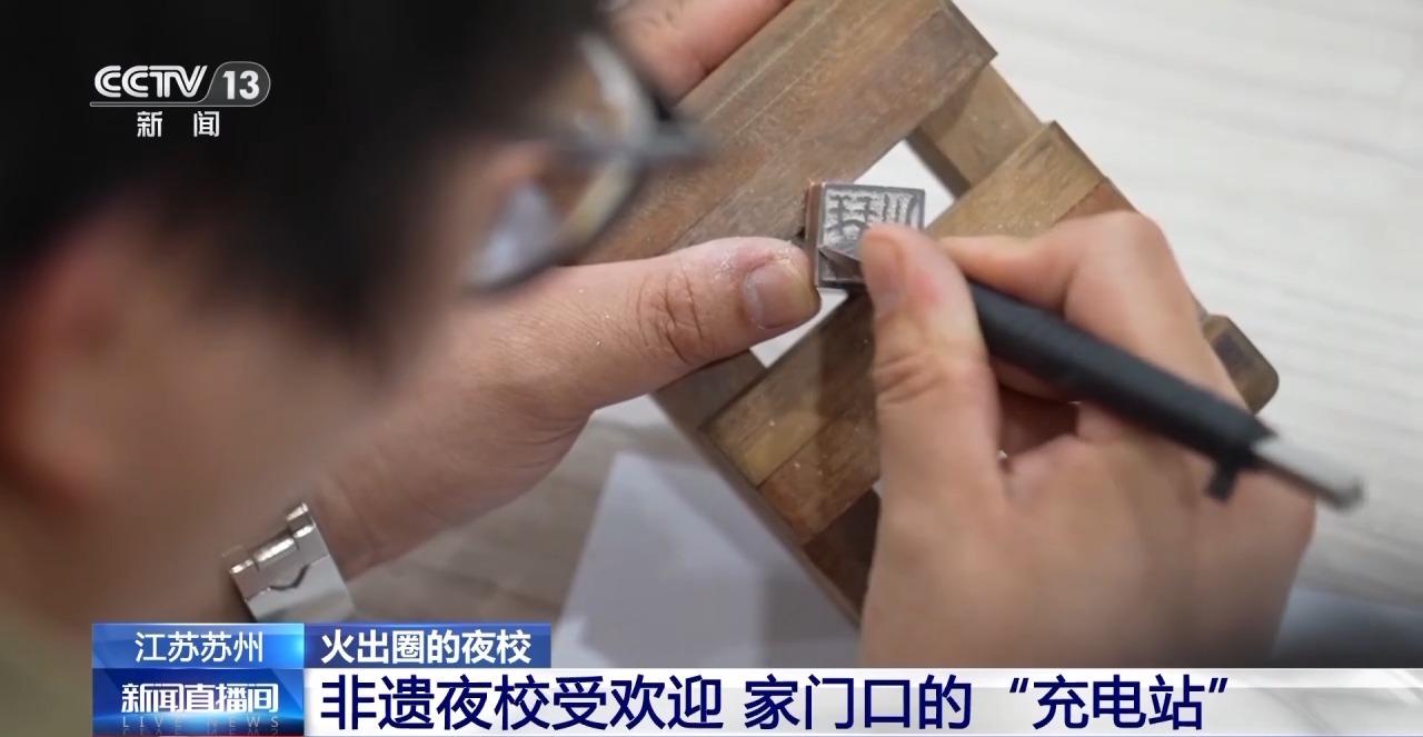 在蘇州,越來越多的傳統技藝正通過“非遺+夜校”的形式,來到人們的家門口。在常熟琴川街道世茂社區,代表當地特色的虞山印派篆刻技藝進了夜校;在太倉雙鳳鎮,民樂愛好者們下班就學起了江南絲竹;此外,崑曲、舞獅等課程也都受到人們的歡迎。