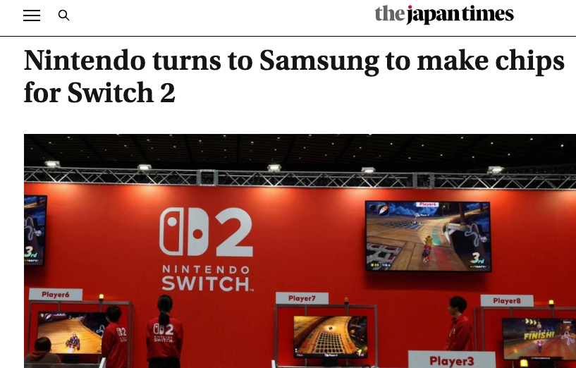 消息稱三星電子獲任天堂Switch 2芯片代工訂單