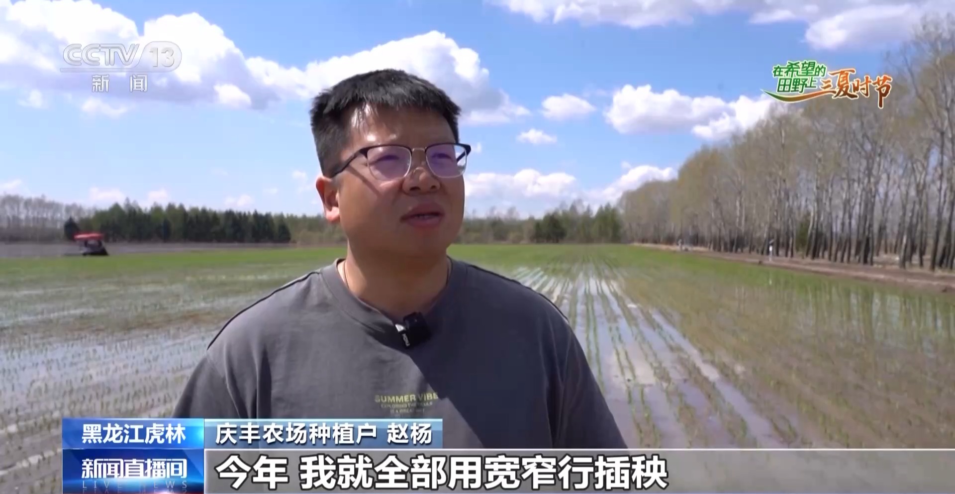 *慶豐農場種植户 趙楊:*這個寬窄行插秧技術,感覺每畝能比正常產量多打個40到50斤左右。今年我就全部用寬窄行插秧,我對今年的豐收充滿了信心。