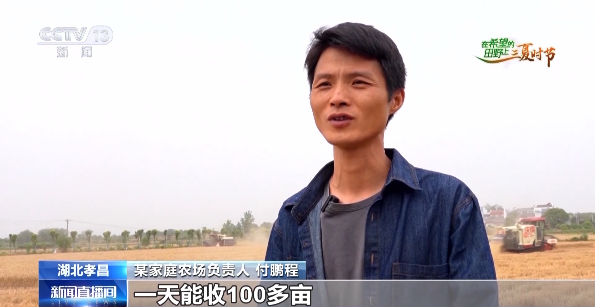 *某家庭農場負責人 付鵬程:*我們機械收割,3分鐘就能割完1畝地,一天能收100多畝,糧食損耗很少。粉碎後的秸稈直接還田,相當於給土地施了有機肥,下一季種玉米能省不少化肥錢。