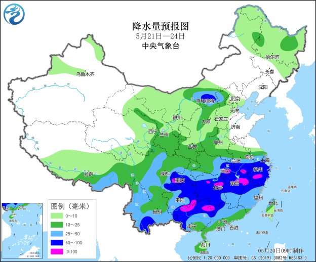 預計5月21日至24日,南方將出現新一輪較強降雨過程,重慶西南部、四川東南部、貴州東南部、廣西北部、湖南北部和西南部、湖北東南部、安徽南部、江西東北部、浙江中部、福建西北部等地部分地區累計降雨量有100~130毫米,局地超過200毫米,並伴有雷暴大風或冰雹等強對流天氣。