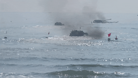 閩南某海域,兩棲裝甲海上駕駛訓練