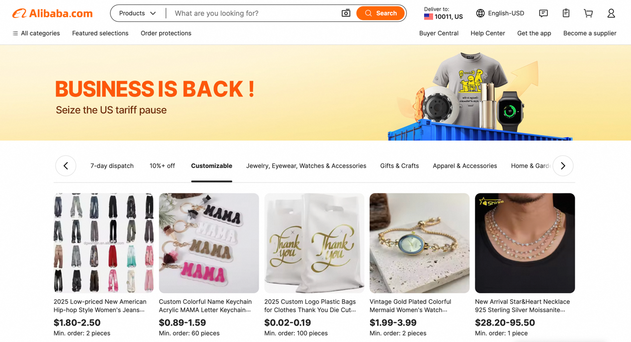 關税從145%降到30%,讓美國買家囤貨潮迅速湧現。“久違的美國訂單回來了!”阿里國際站上多位商家表示,為了抓住90天關税窗口期,美國老買家基本上連價格都不問,就衝進阿里國際站瘋狂下單採購,“我要一個集裝箱貨櫃的貨!”“直接給我發空運!”不少美國買家基本遵循不講價、只求快的原則,期望在90天內可以為下一個週期儘量多囤貨。有些美國買家甚至已經開始為聖誕季“未雨綢繆”囤貨了。