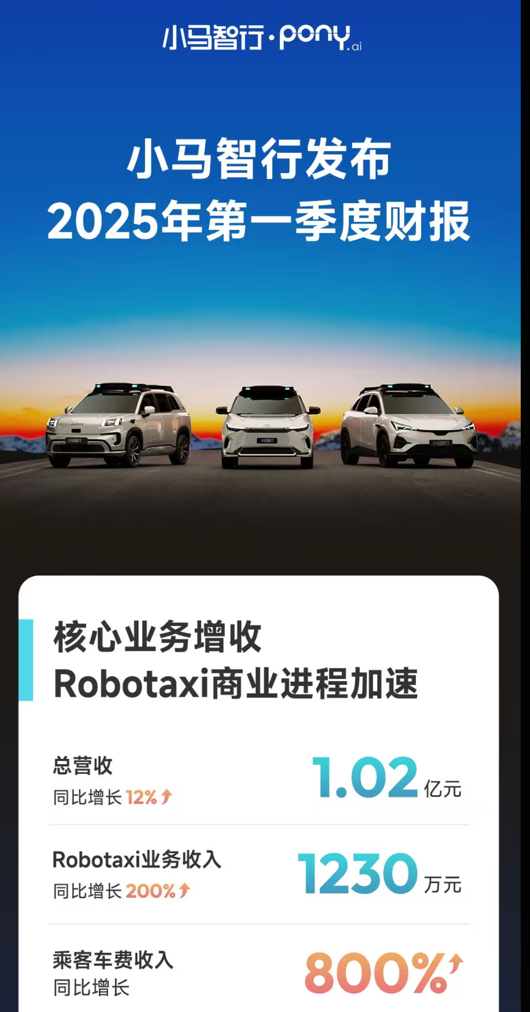 小馬智行2025年Q1財報:Robotaxi收入同比增200%