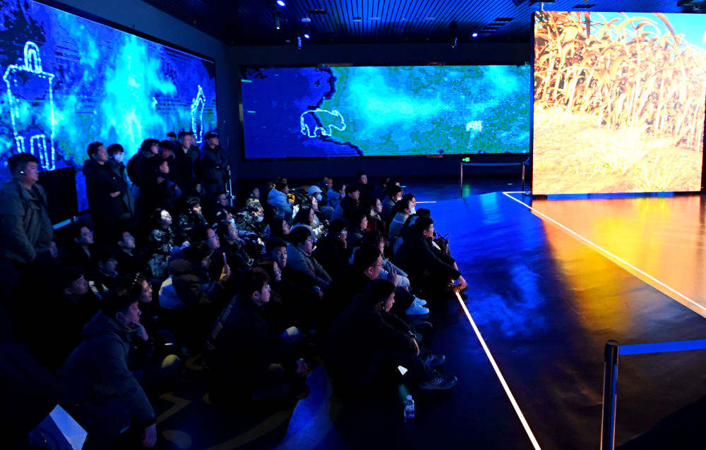 2025年2月21日,遊客在安陽殷墟博物館新館數字展廳內觀展。