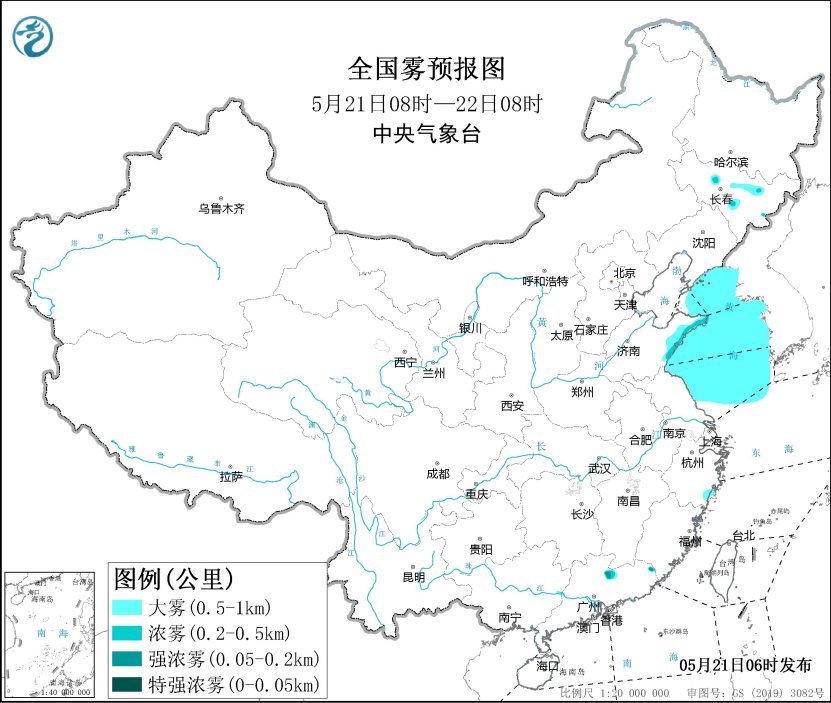 此外,未來三天,黃海大部、東海北部等海域將出現大霧天氣。其中今日,渤海海峽、黃海大部海域、成山頭附近海域、青島港、日照港將有能見度不足1公里的大霧;今晨至上午,山東半島等地部分地區有大霧天氣,局地有能見度不足200米的強濃霧。