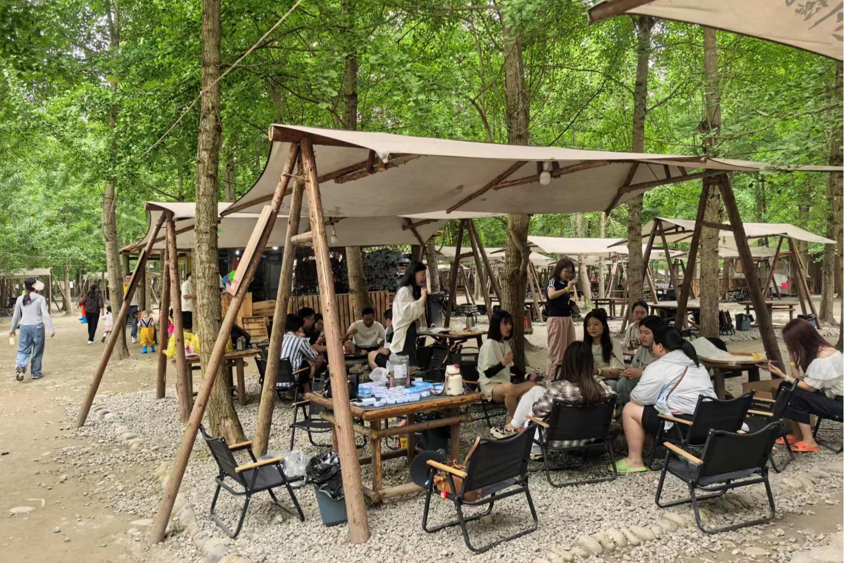 “‘露營經濟’是我們的發展方向,定位是大城市周邊遊,輻射人羣主要為城市裏的家庭客户,經營模式為‘一價全包’。”“長河落日園”森林營地負責人張英傑介紹,客户所購買的入園門票涵蓋了營地內的吃、喝、娛、遊,既滿足了大人“躺平式遛娃”的需求,也讓小朋友體會到了“鄉下的童年”。