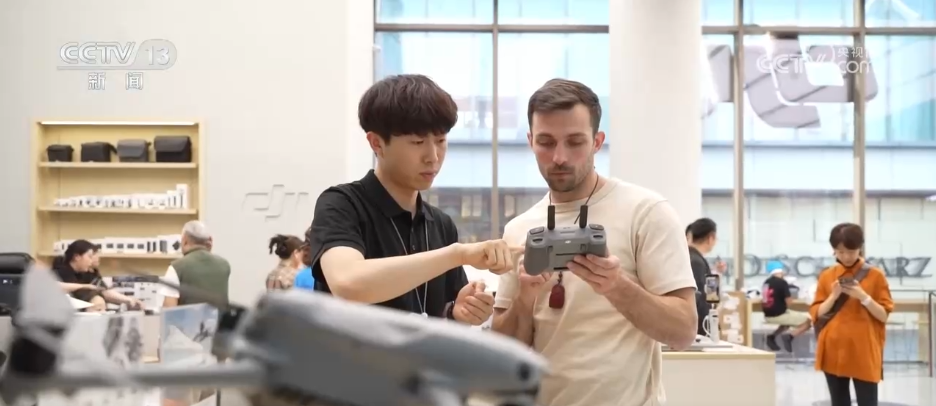 在北京一家購物中心的電子產品專賣店,來自美國的遊客喬丹正在選購無人機。這家店提供離境退税服務,外國遊客只要購買200元以上的產品就可以進行退税,並且退税流程也很方便,只要到商場的即買即退集中退付點就能辦理相關手續,拿到退税現金。