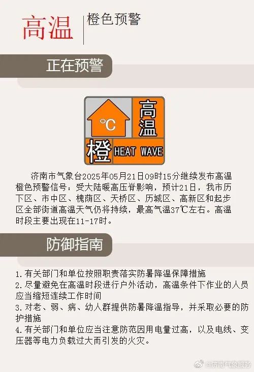 今早濟南霸榜全國第一!繼續發佈高温橙色預警,“退燒雨”馬上到
