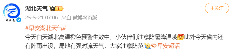 直衝40℃!今年首個湖北高温橙色預警生效中
