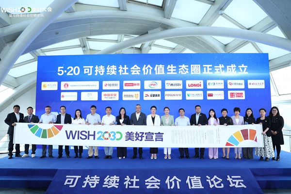 會上,伊利攜手騰訊、聯想、隆基綠能、平安公益基金會、安踏、復星公益、華潤慈善基金會、愛眼公益基金會、萬科公益基金會、順豐公益基金會、周大福慈善基金會等多家企業和社會組織,共同成立“可持續社會價值生態圈”,並聯合倡議《WISH2030美好宣言》。該宣言涵蓋踐行可持續理念、創造社會價值、貢獻中國方案等十個方面,旨在推動經濟、社會與環境的可持續發展。
