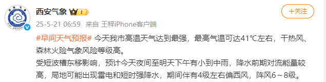 高温紅色預警!西安小到中雨今夜到!陝西多地有雨、雷暴大風