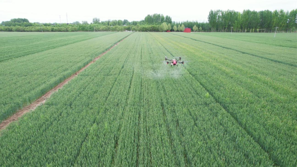 保定市農業農村局總農藝師王紅江表示,高温乾熱風天氣是對小麥生產的一次嚴峻考驗。保定市農技人員深入田間地頭,指導農户澆水、噴灌,給麥田降温增濕,創造適宜的生長環境。同時,利用無人機噴施磷酸二氫鉀提高植株抗逆能力,促進小麥灌漿增粒重,延長葉片功能期。
