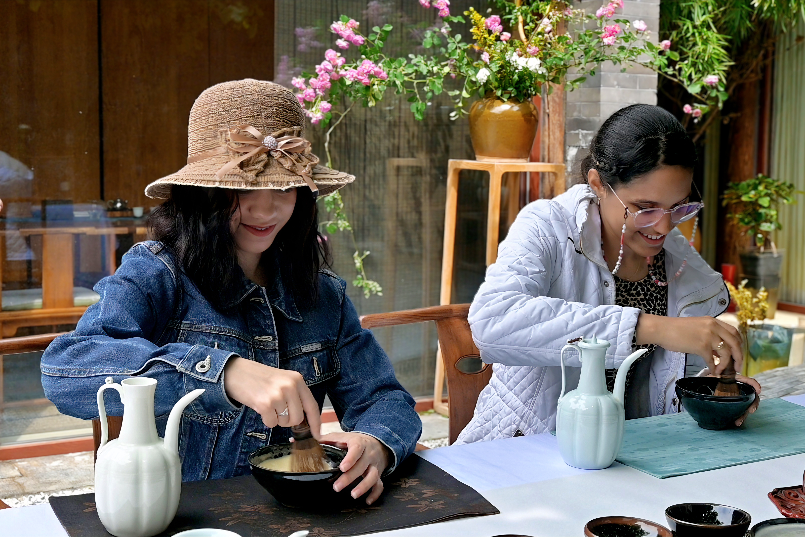 【環球網報道 記者安雪 實習記者温子依】茶起源於中國,盛行於世界。適逢5月21日“國際茶日”,古巴留學生彩悦和曉婷懷着對中國茶文化的好奇與嚮往,“沉浸式”體驗中國宋代點茶技藝,感受千年茶文化的獨特魅力。