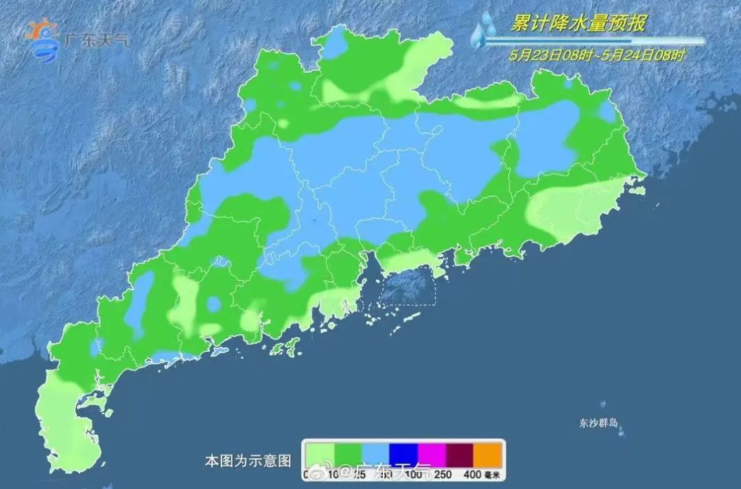 據@廣東天氣 預測,22日,廣東大部多雲為主,部分市縣有(雷)陣雨,局部大雨或暴雨;23-24日,中北部市縣有大雨局部大暴雨,湛江、茂名、汕頭、潮州有中到強雷雨局部暴雨,部分市縣伴有短時強降水、8~10級雷雨大風、局地小冰雹等強對流天氣。