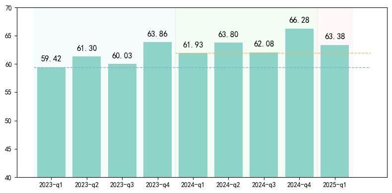 數據顯示,2023年一季度到2025年一季度,中國線上消費品牌指數(CBI)從59.42升至63.38,全國消費者所購品牌的平均評分在兩年間增加4分;2024年四季度相較基期指數增加11.5個百分點,2025年一季度相較基期指數增加6.7個百分點,表明我國消費品質顯著回暖。