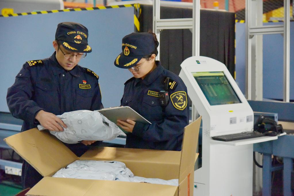 無錫海關關員對運往墨西哥的跨境電商商品進行查驗(2024年12月26日攝)。新華社發