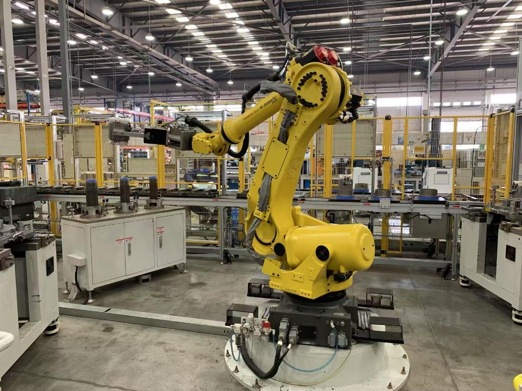 威格(江蘇)電氣設備有限公司的生產車間內,智能機器人在進行作業(2025年1月10日攝)。新華社發