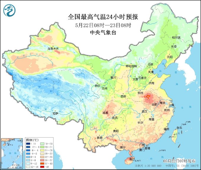 昨日,貴州北部、四川東部、重慶、湖南西北部、湖北東部等地部分地區出現大到暴雨,貴州遵義和畢節、四川瀘州、重慶、湖南張家界和常德、湖北武漢等局地大暴雨(100~238.8毫米);上述地區最大小時降雨量50~80毫米,貴州遵義、四川瀘州、重慶、湖南張家界和常德、湖北武漢局地達90~115毫米。另外,黃淮、華北西部、西北地區東部、江淮西部及四川盆地等地出現35℃以上高温天氣,陝西安康和西安、山西運城和臨汾、河南許昌和三門峽、湖北襄陽和十堰等局地達40~41.5℃。