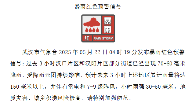 武漢市氣象台5月22日6時發佈