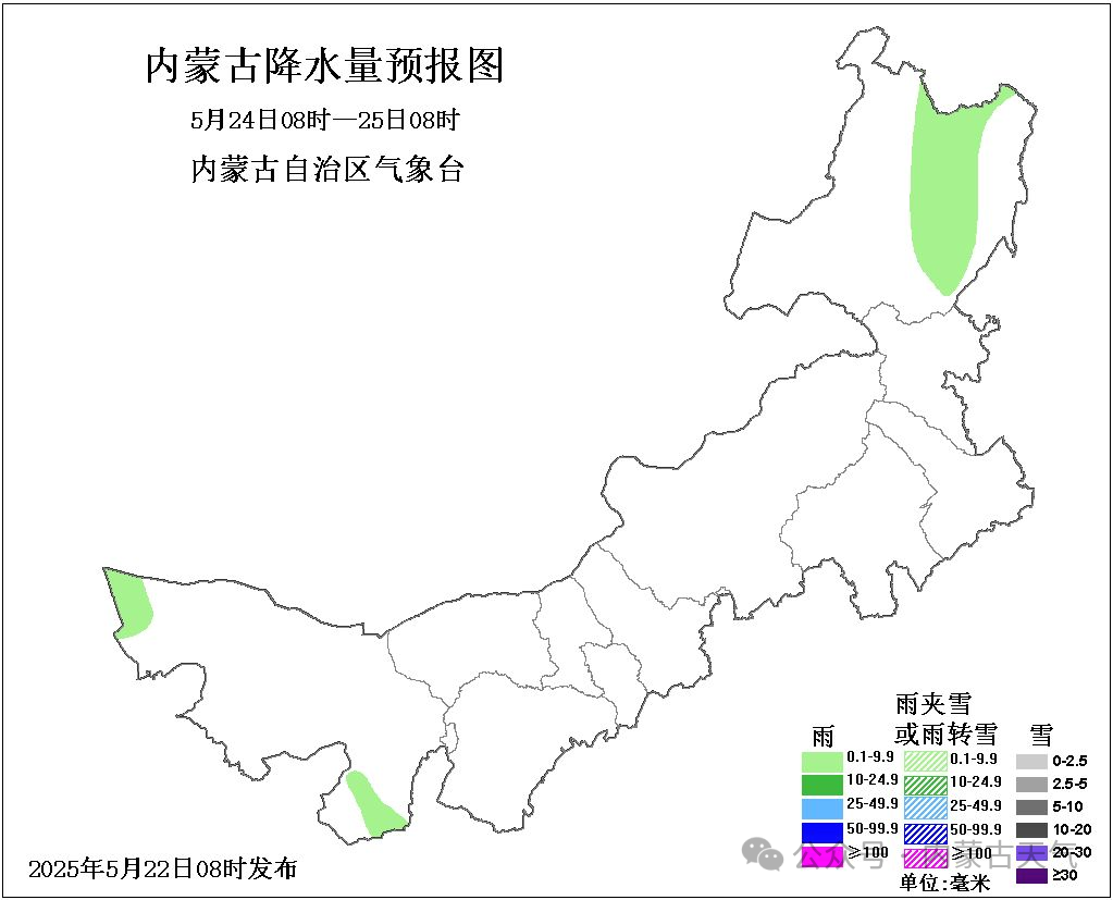 24日08時至25日08時,阿拉善盟西部和東南部、呼倫貝爾市東部多雲,有分散性小雨。