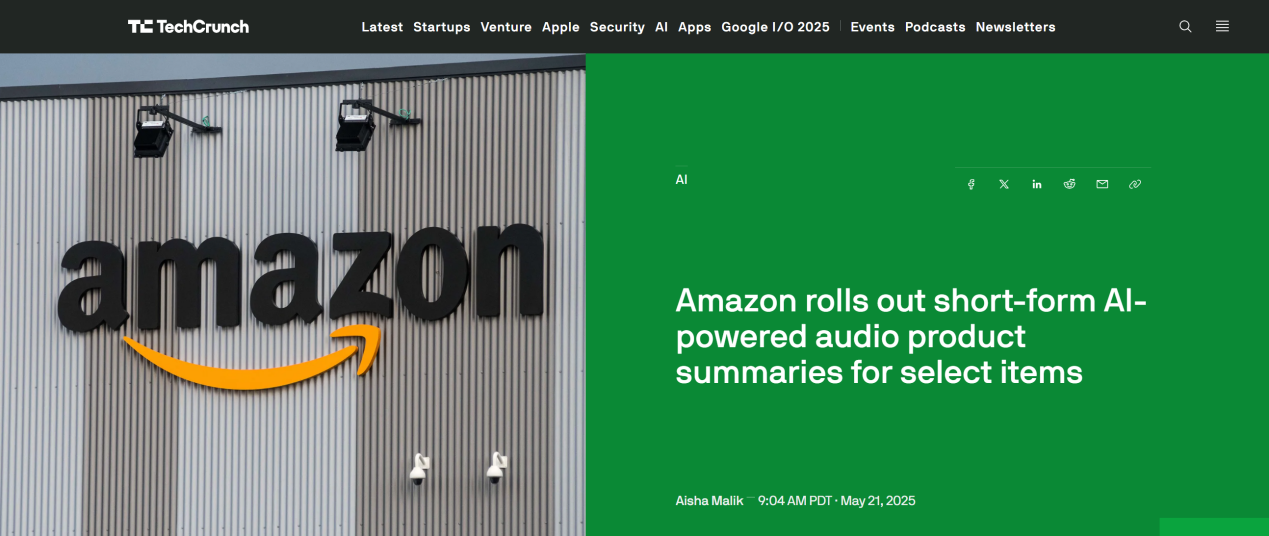 【環球網科技綜合報道】5月22日消息,亞馬遜於本週三宣佈,正在部分產品頁面開展一項由人工智能驅動的簡短音頻產品摘要測試。這些音頻摘要由亞馬遜所稱的“人工智能購物專家”進行配音,內容涵蓋產品主要功能、客户評論以及網絡相關信息。