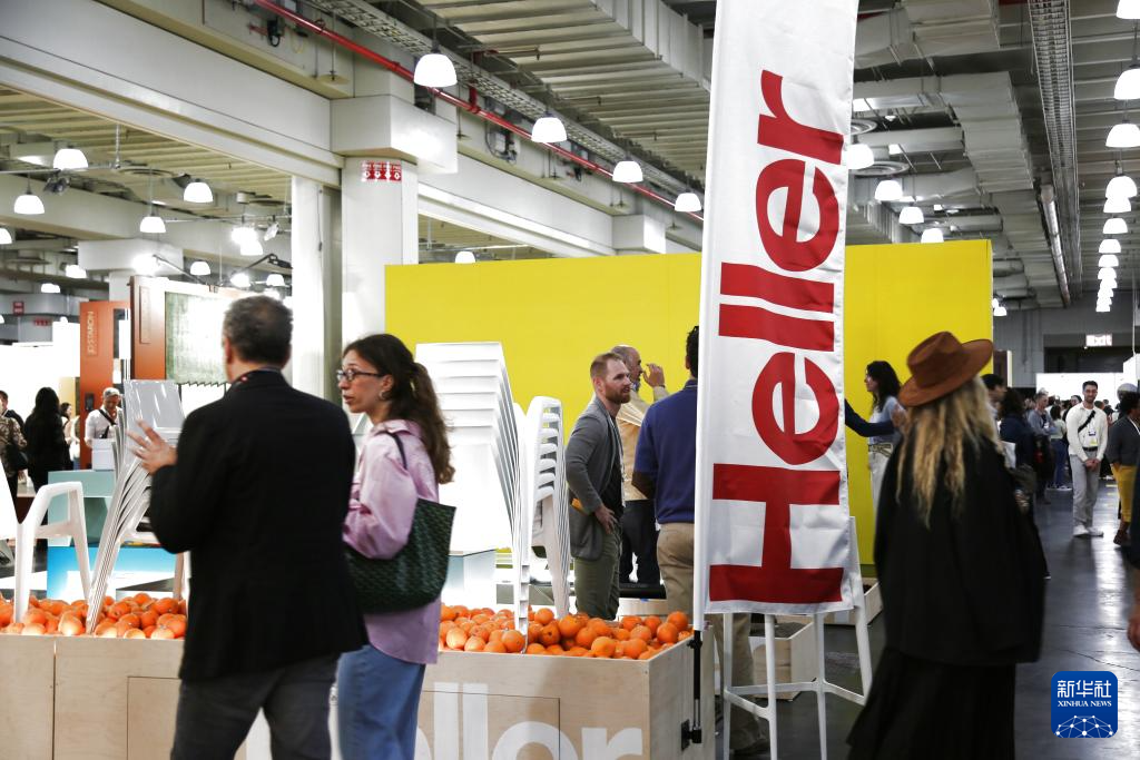 5月18日,在美國紐約舉行的2025年國際當代傢俱展現場,人們在美國康涅狄格州傢俱企業赫勒公司的展區參展。新華社記者 劉亞南 攝