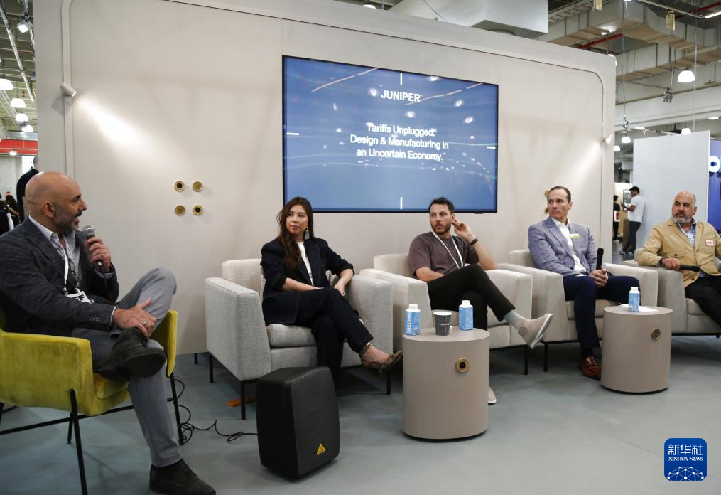 5月18日,嘉賓在美國紐約舉行的2025年國際當代傢俱展上就關税進行小組討論。新華社記者 劉亞南 攝