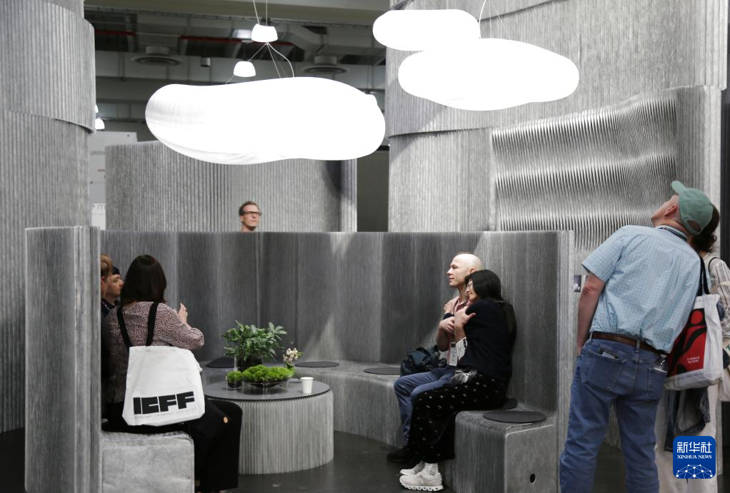 5月18日,人們在美國紐約舉行的2025年國際當代傢俱展現場參觀。新華社記者 劉亞南 攝
