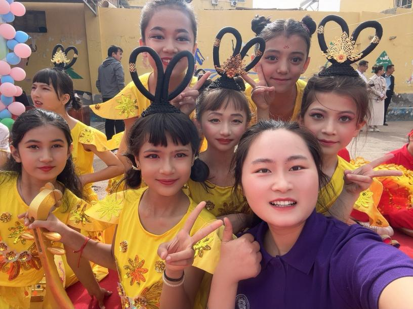 孩子們與楊婉迪的合照(央廣網發 天津工業大學供圖)