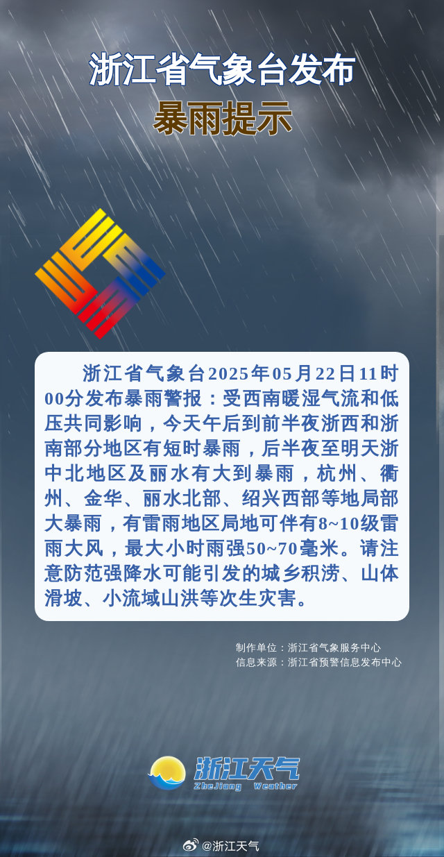 杭州市氣象台5月22日11時發佈