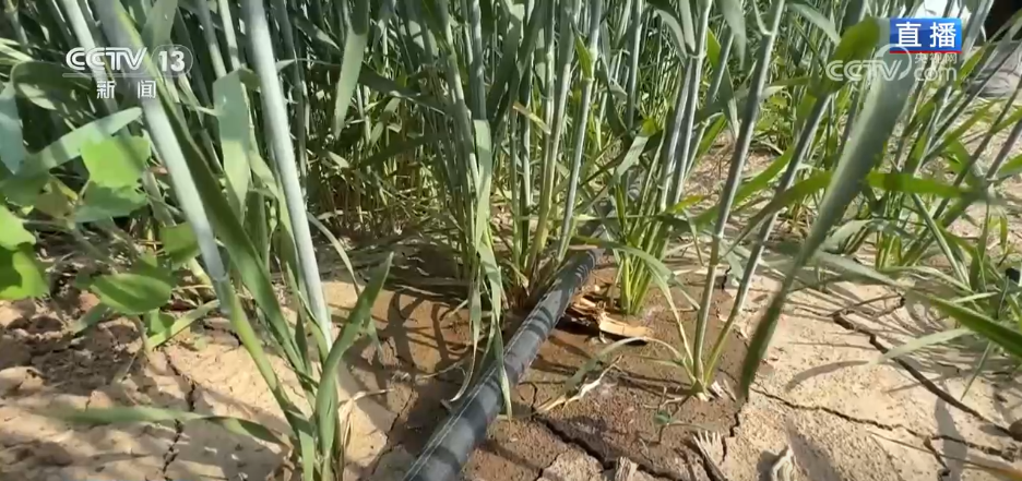 説到澆地,這裏也十分地方便,農户們只需要用手機一鍵操作就能開始,操作者也不用守着莊稼,可以隨時隨地用手機完成。現在記者身旁的麥田正在澆灌漿水,但是水在哪?這水是從這根黑色滴灌帶的小孔裏滴在在小麥的根部,但是別小瞧了這個小孔,它實現了精準澆灌,滴出來的水能覆蓋周圍三十釐米直徑的範圍。通過這種“小水滴灌”的方式,小麥根部既不缺水,同時土壤也不會出現含水量過大而鬆軟,遇到大風時小麥也不會倒伏。滴灌帶是在小麥播種時同步鋪設到地裏的,能兼顧小麥以及小麥豐收後輪作玉米的用水需求。這種淺埋滴灌的節水技術,每畝地可節約水100立方米左右、節約肥料30公斤。