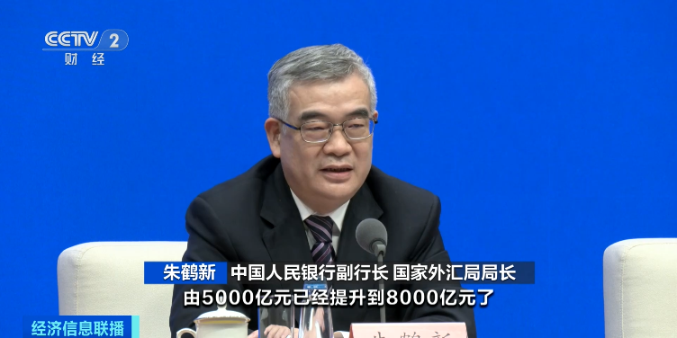中國人民銀行副行長 國家外匯局局長 朱鶴新:中國人民銀行已經將科技創新和技術改造再貸款的規模由5000億元提升到8000億元,同時下調再貸款利率,由1.75%下調到1.5%。